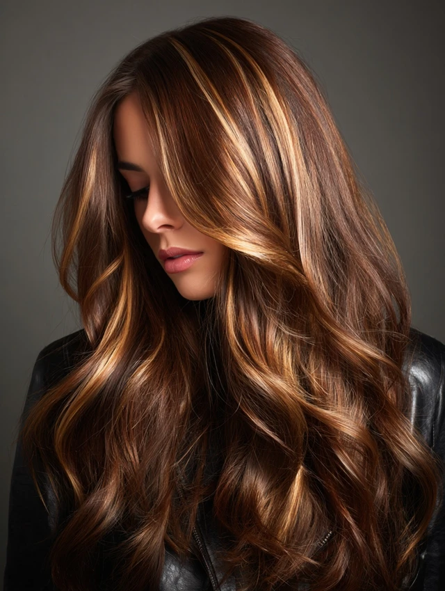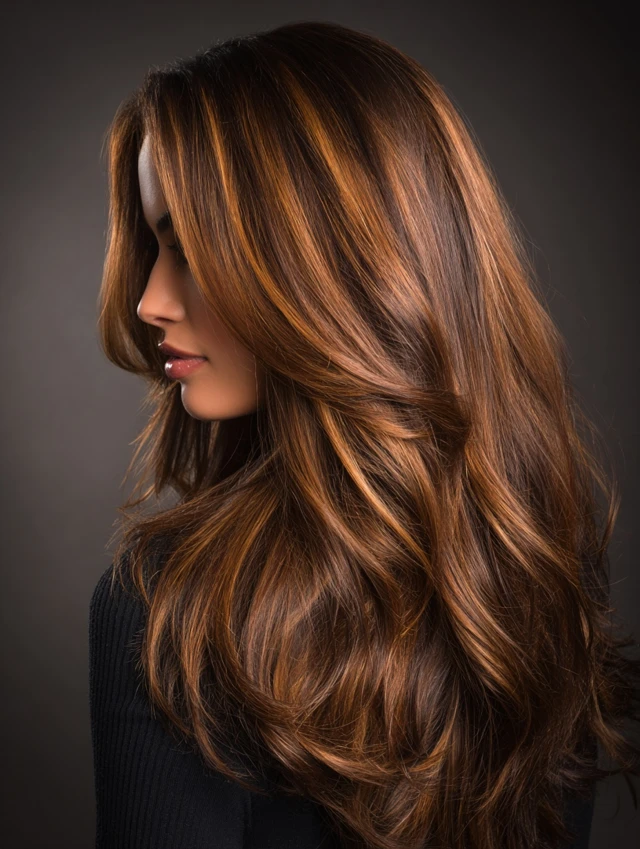 Warm Caramel Hair with Rich Chocolate Highlights