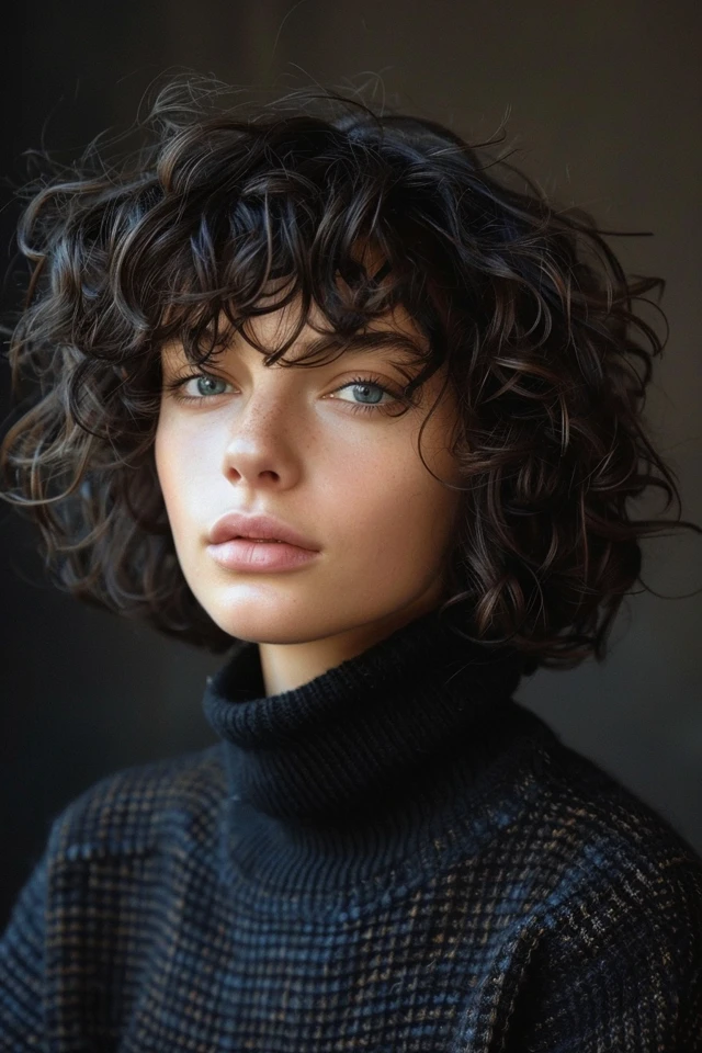 A curly bob with soft layers creates a rounded shape that enhances natural bounce. The layers prevent the curls from clumping together, allowing them to fall in a more dimensional and voluminous way. This style typically sits around the chin, making it easy to manage.