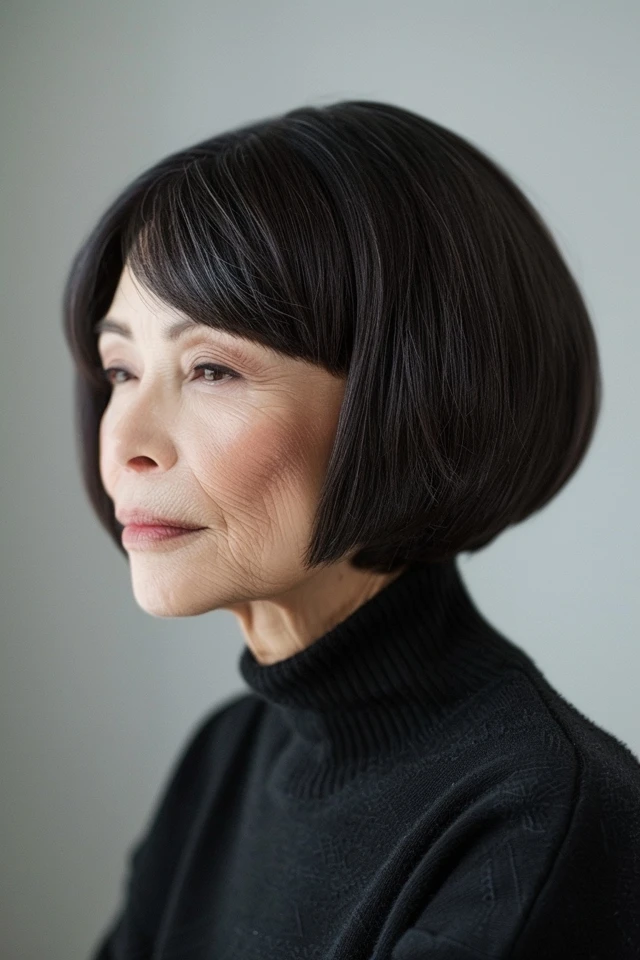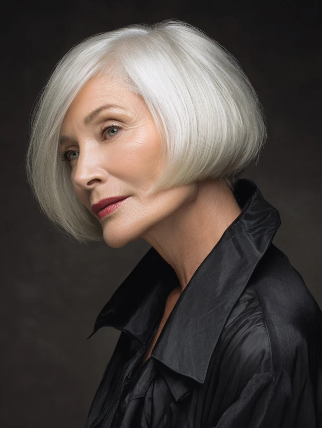 A sleek short bob emphasizes smooth lines and a polished finish. The clean shape helps hair appear fuller and more defined.