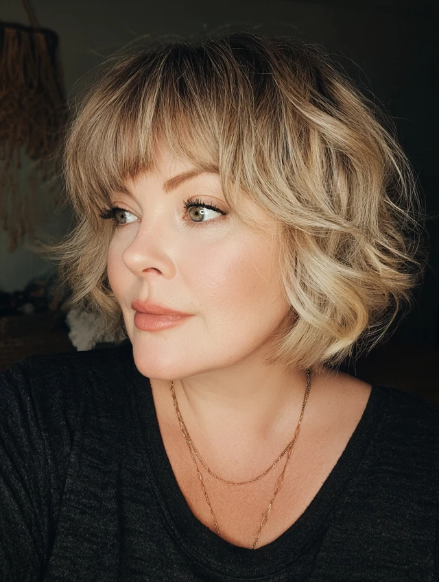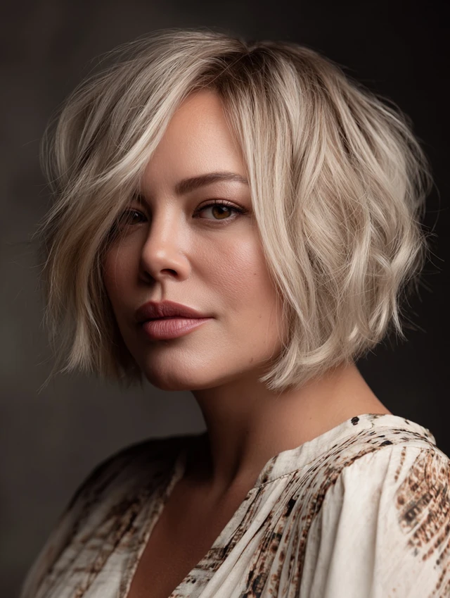 A wavy bob adds gentle movement that enhances the overall shape. The waves create dimension and prevent flatness.