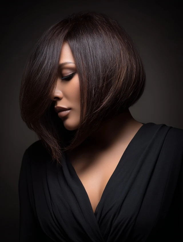A blunt bob with a sleek finish creates a sharp, defined look. The straight edges add structure and balance.