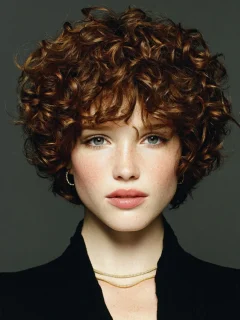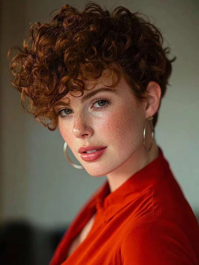 A curly pixie cut embraces natural texture while keeping the length short and manageable. The curls add softness and dimension.