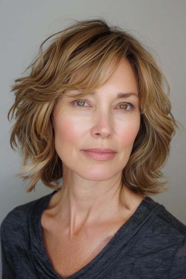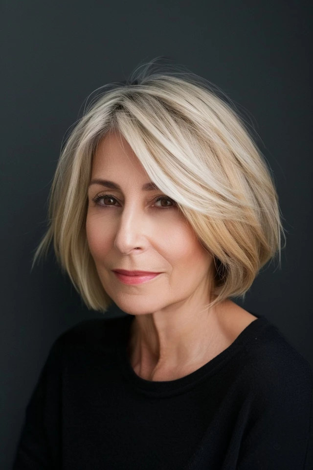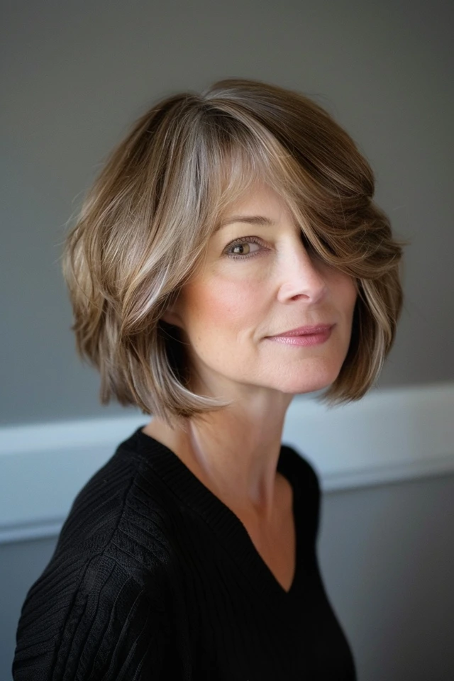 A layered bob adds softness and movement, preventing the hair from looking flat. The layers allow the hair to settle naturally.