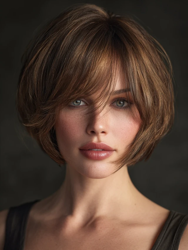 A layered bob with soft face-framing pieces creates a gentle outline that highlights facial features. The layers add movement while keeping the style light.