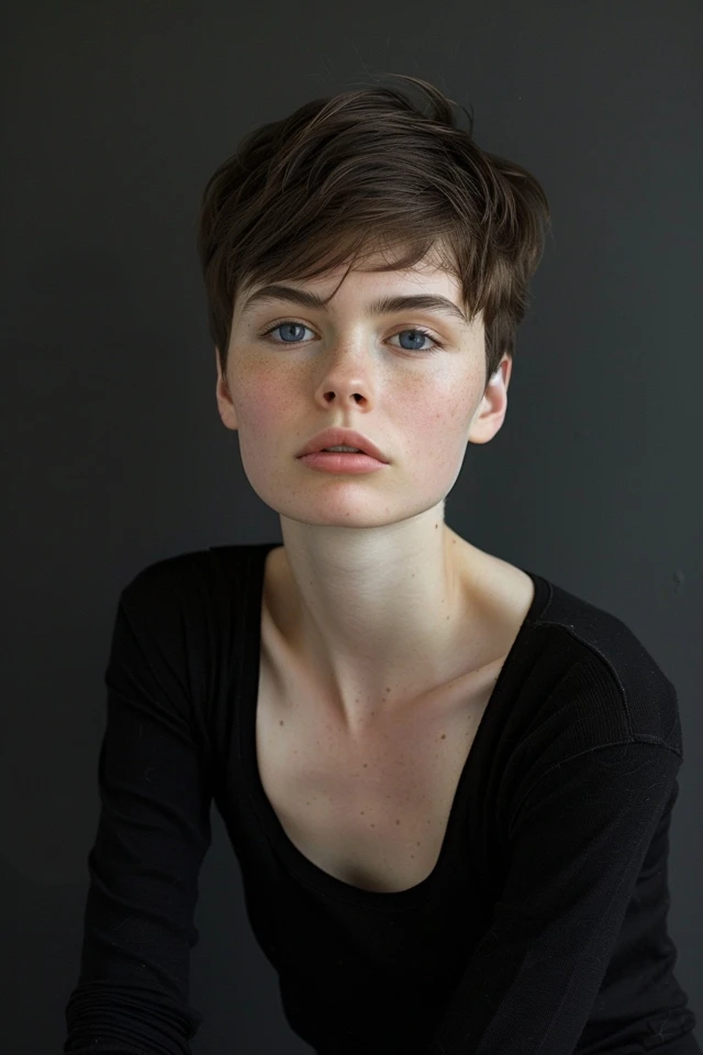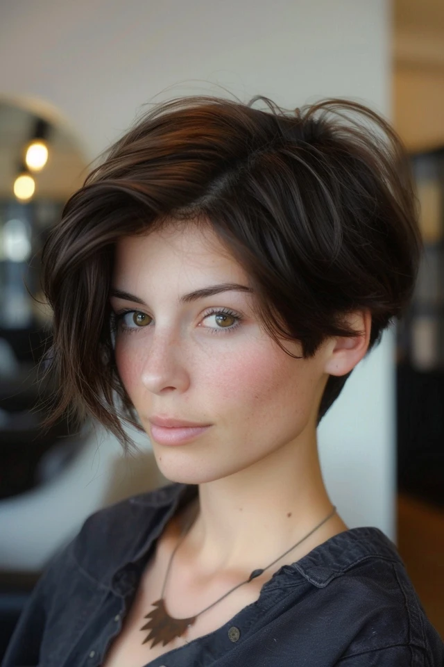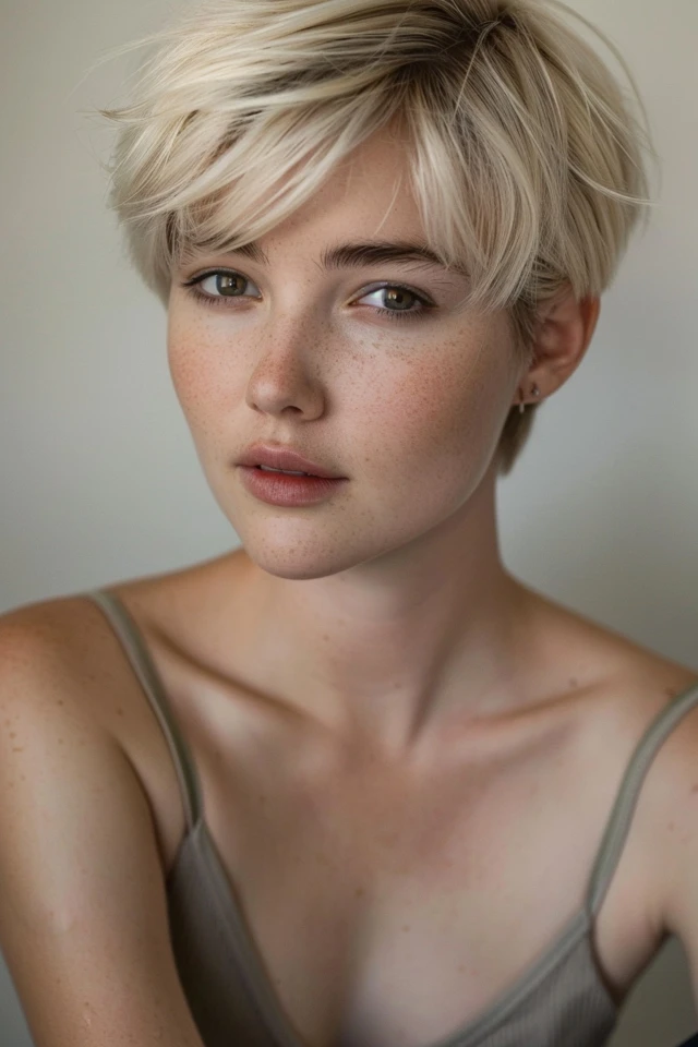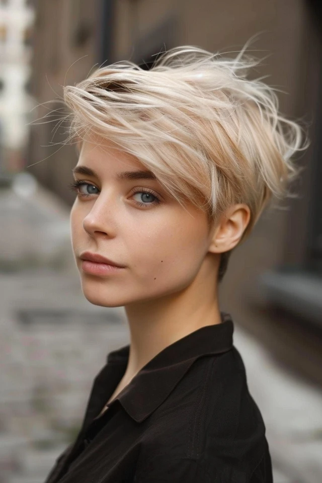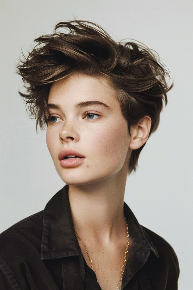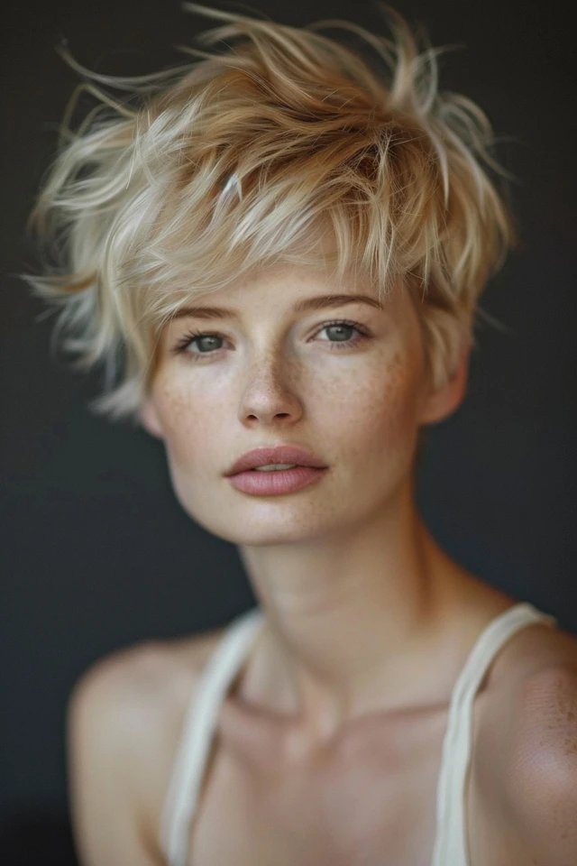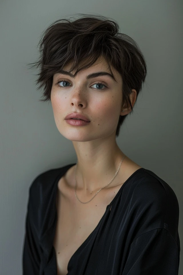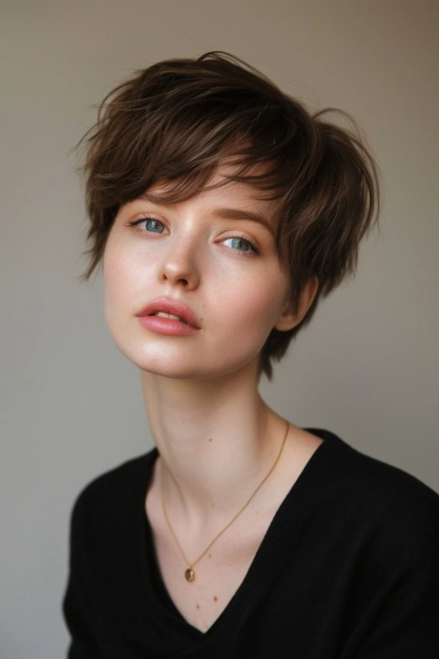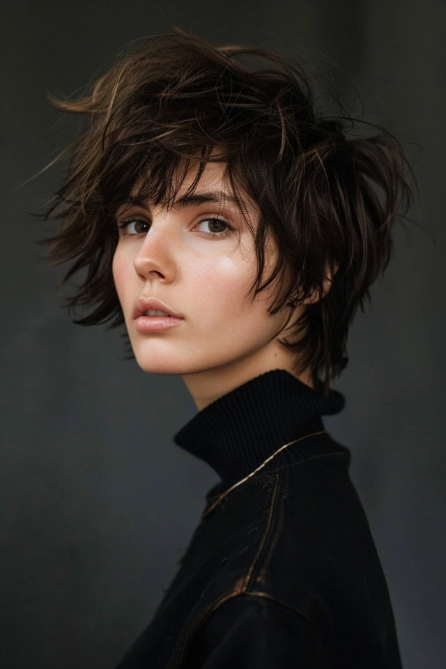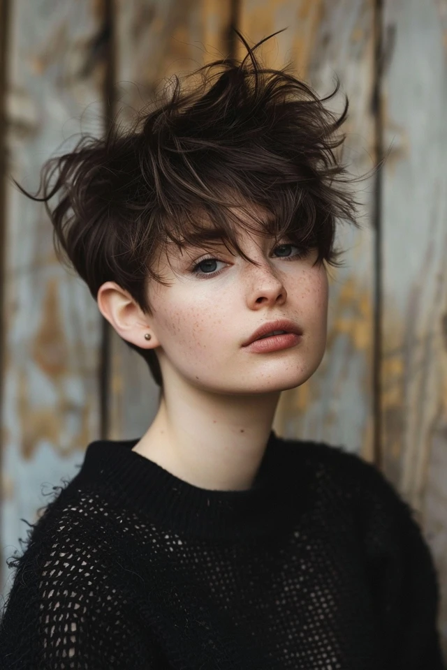 A tousled pixie adds a relaxed, messy texture that creates movement and dimension. This prevents the hair from looking flat.