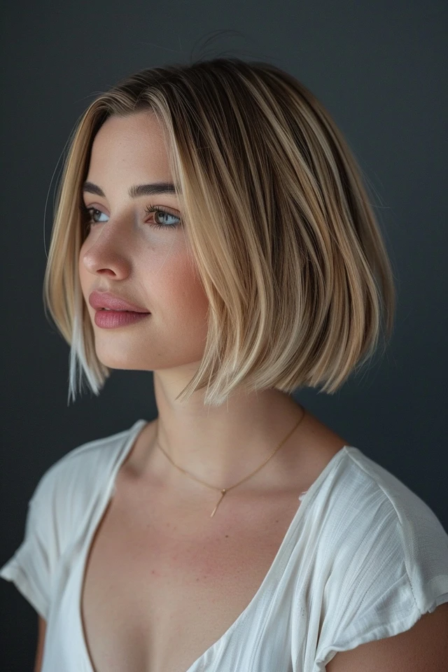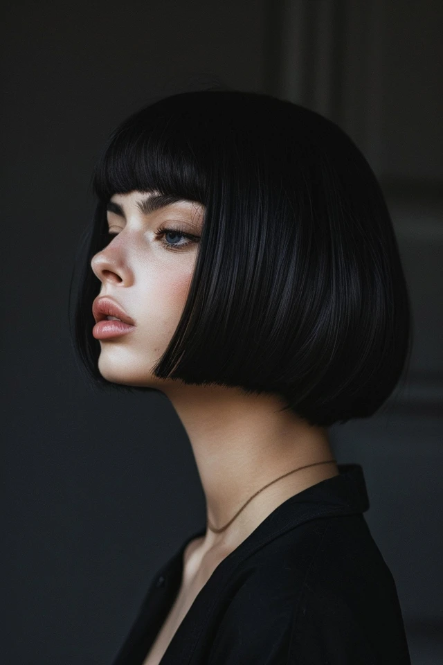 A blunt bob keeps the ends even, creating the illusion of thicker hair. The clean line adds density and structure to fine strands.