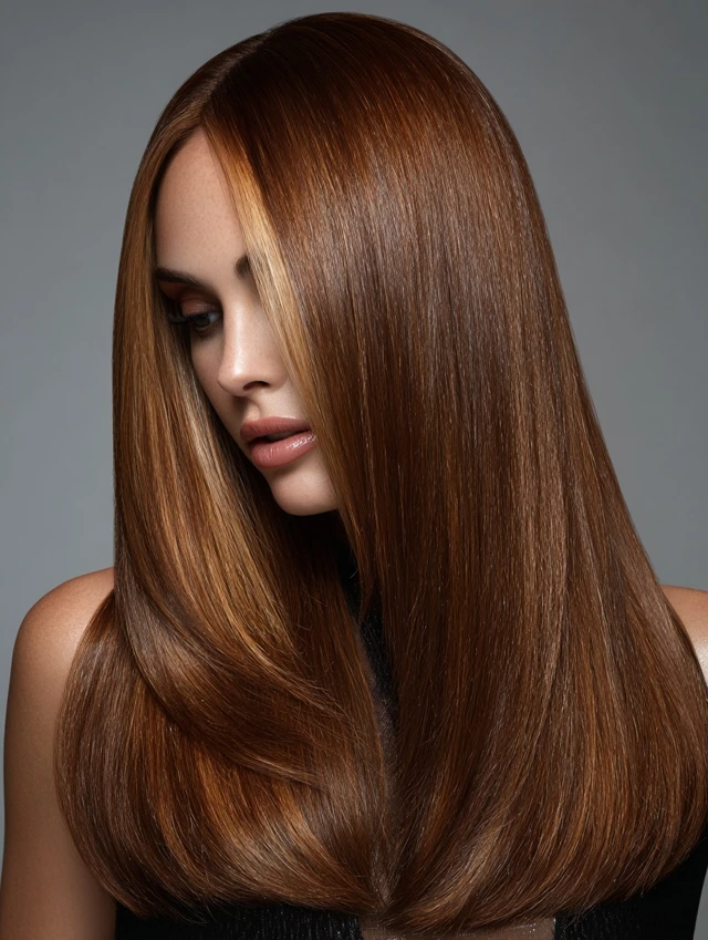 Caramel Hair with Sleek Finish and Defined Money Piece