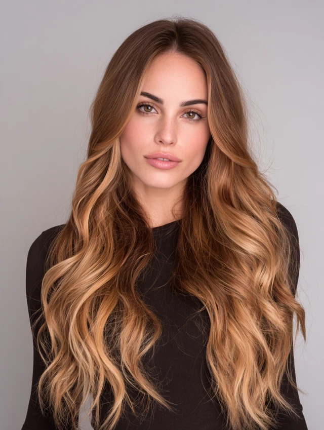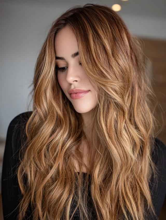 Caramel Hair with Money Piece and Soft Waves