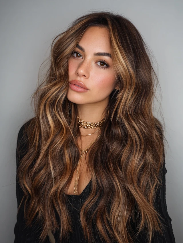 Caramel Hair with Multi-Tonal Money Piece Highlights