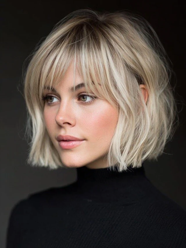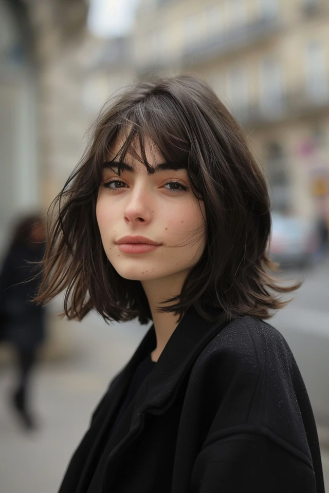 A chin-length blunt bob paired with subtle layers offers the best of both worlds—structure and movement. The blunt edge provides definition, while hidden layers reduce heaviness underneath. This prevents the style from appearing too dense or boxy.
