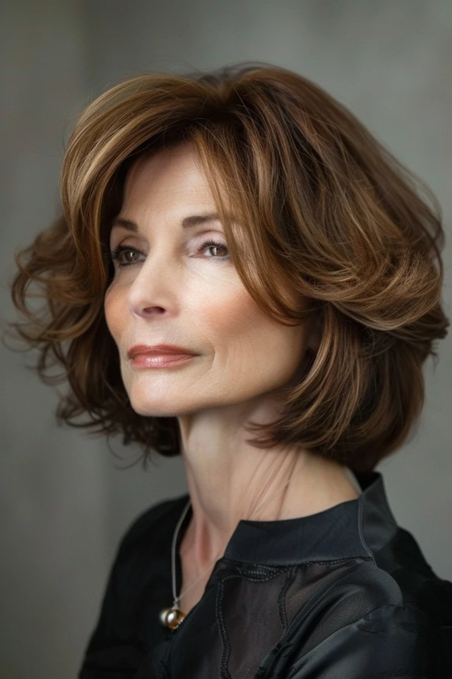 Blow-drying with a light outward motion enhances the feathered effect. The style feels soft and flattering, offering a balanced look that maintains volume without overwhelming the overall shape.