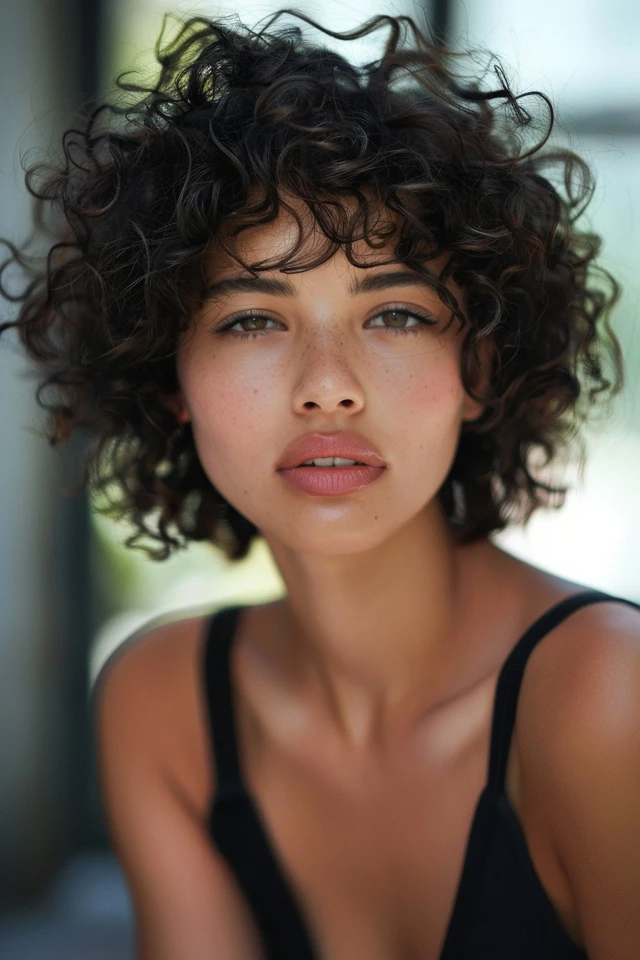A cropped curly cut embraces natural texture while keeping length short enough to control volume. Layers help shape the curls and prevent them from forming a heavy mass.