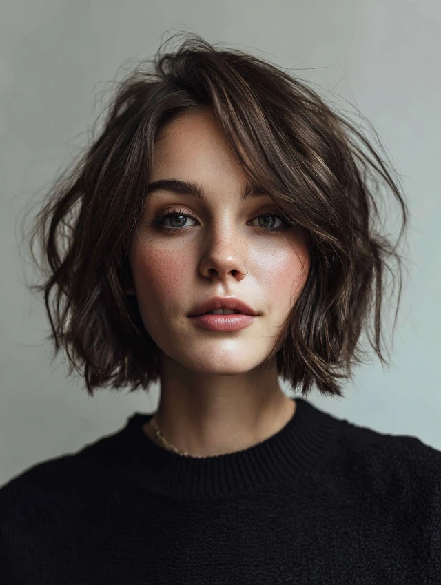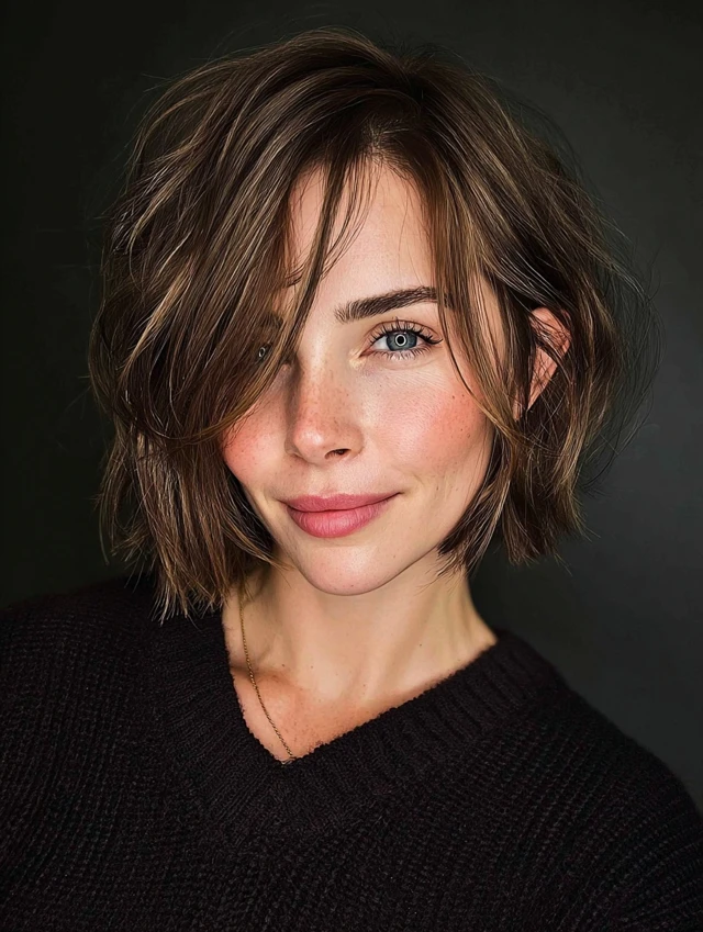 Bixie cuts balance volume and length perfectly, giving round faces a structured yet soft look without overwhelming natural features.