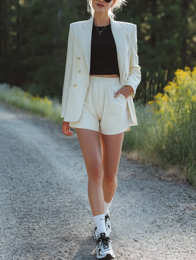 Blazers shine in neutrals (black, beige, gray, white, navy) but can also pop in bold colors like red, green, or pastel tones. Play with textures like tweed, satin, or leather for extra interest and depth.