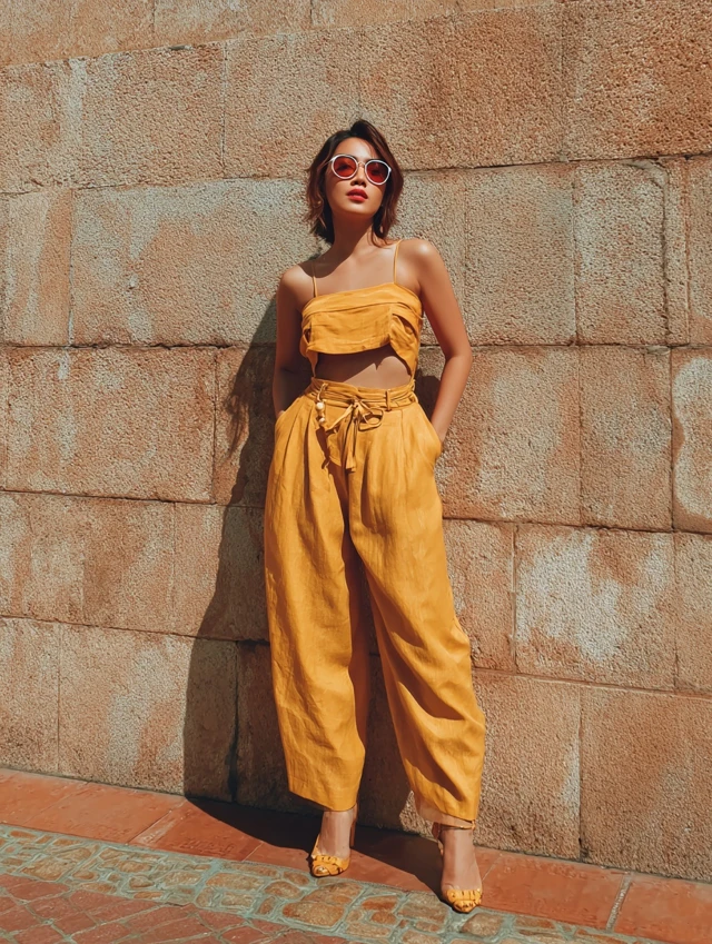 Crop tops let you experiment with colors, prints, and fabrics. Go neutral for minimal chic, bright for a bold statement, or ribbed knits and lace for texture play. Pair solid tops with printed bottoms or mix monochrome tones for a clean, elevated look.