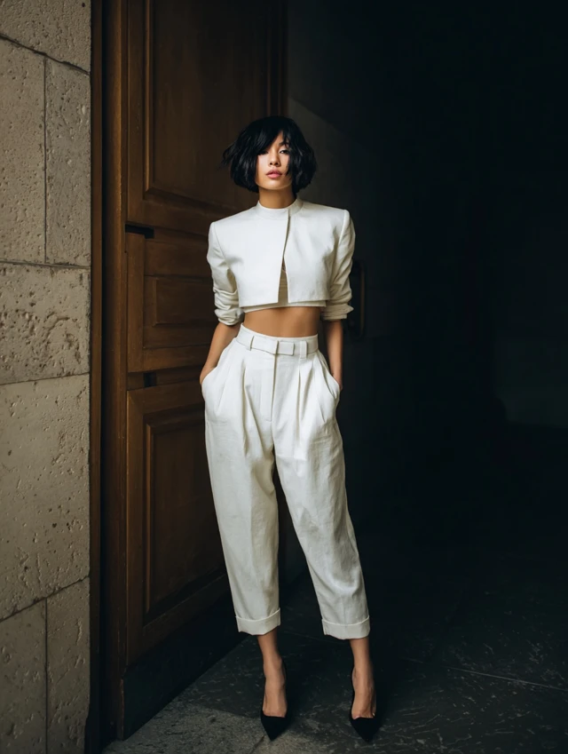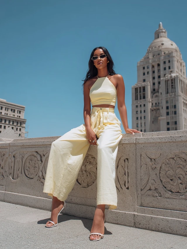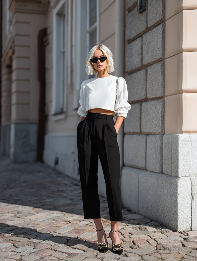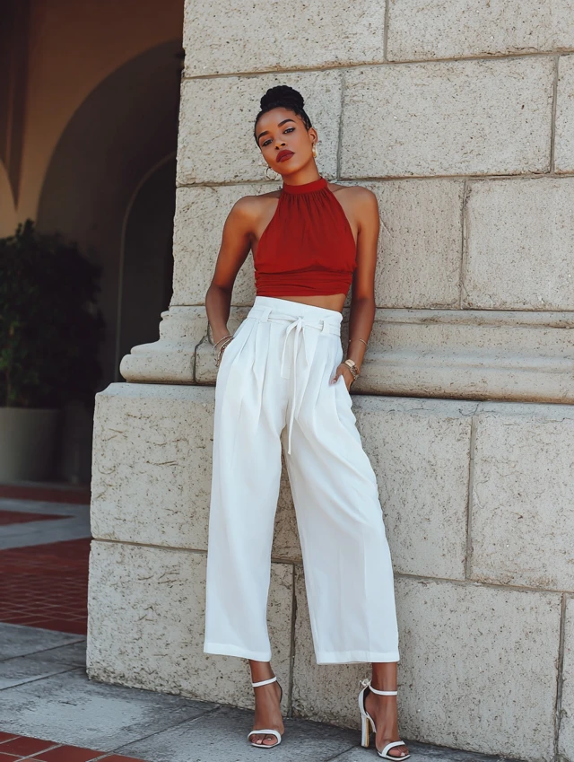 1. Crop Top + High-Waisted Wide-Leg Pants