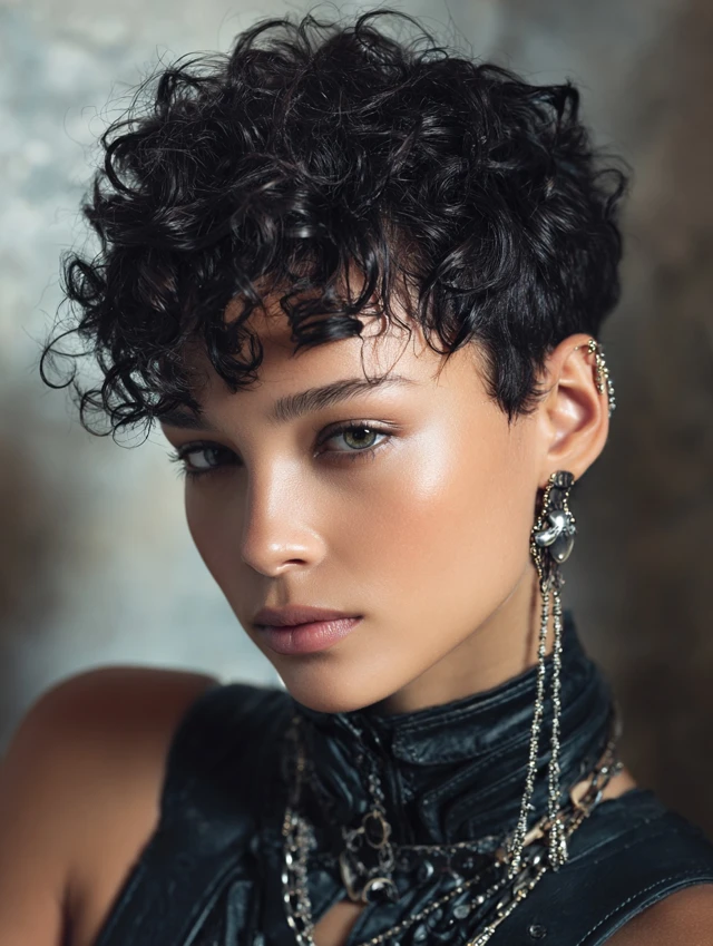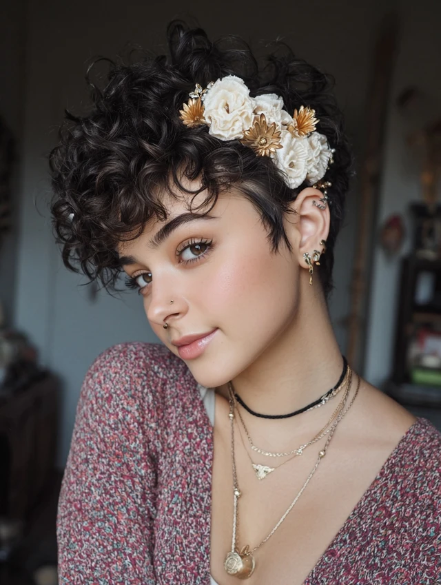 4. Short Curly Pixie with Accessories