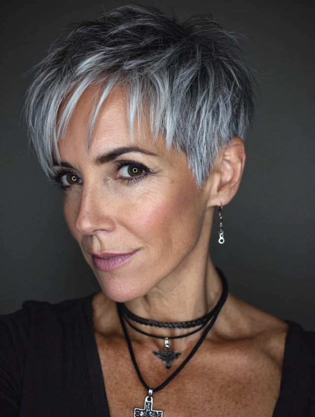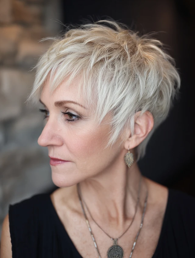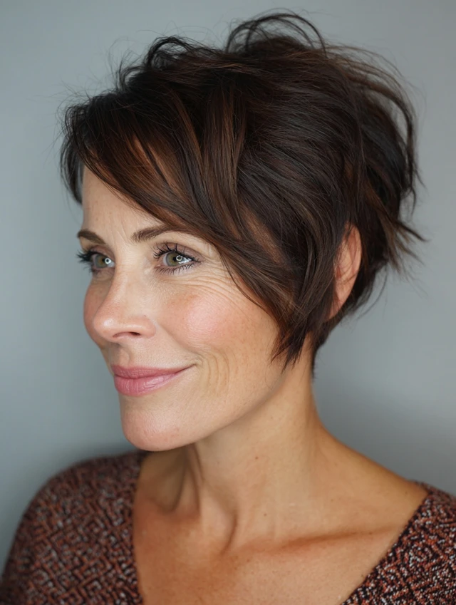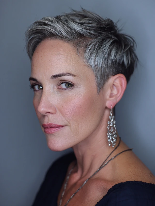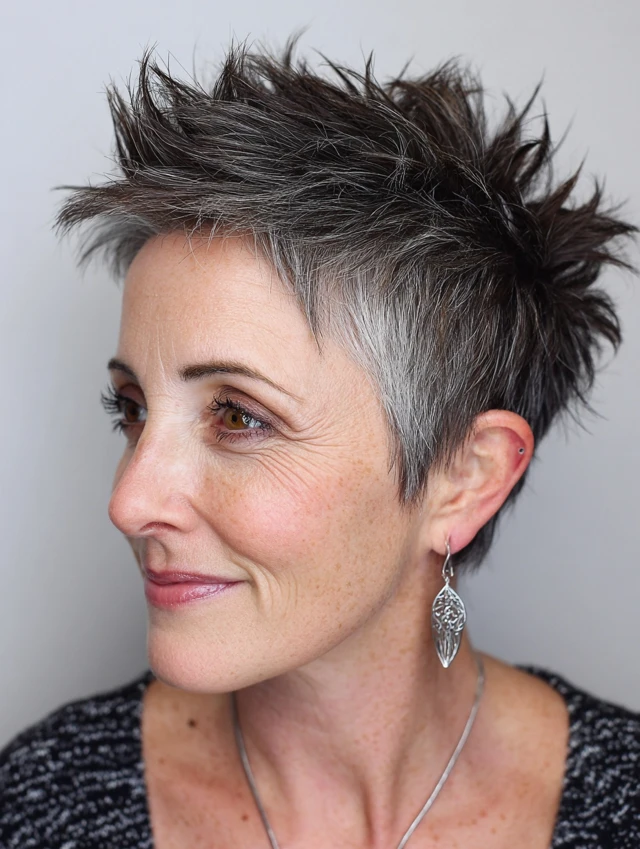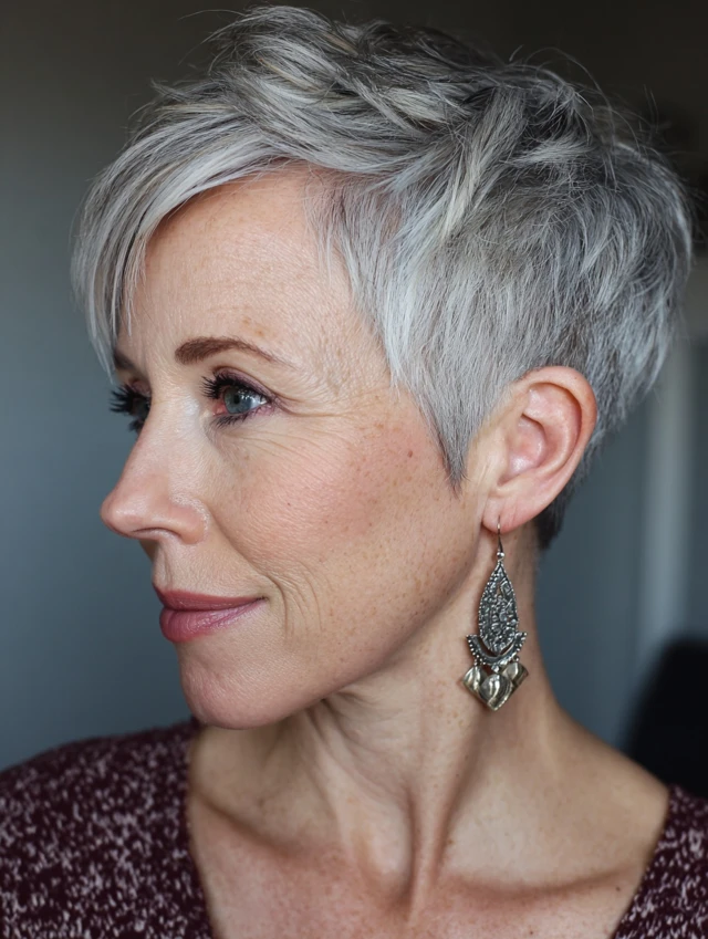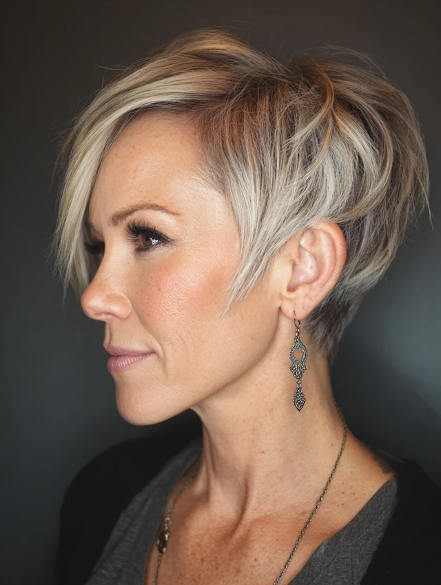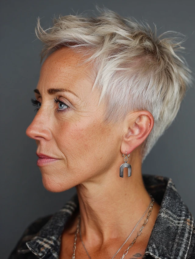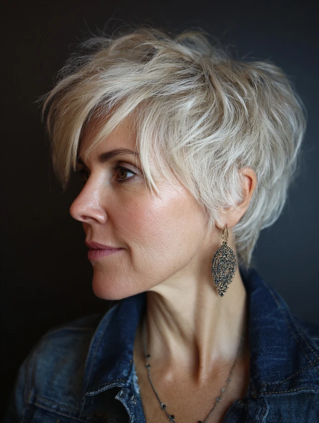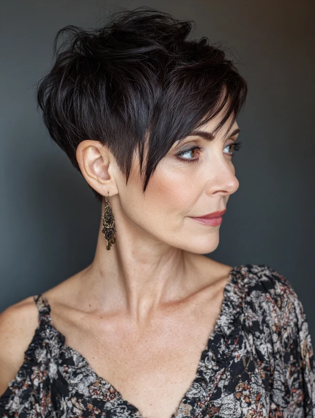 Edgy pixie cuts are versatile, easy to style, and ideal for women over 40 who want a fresh, daring, and age-defying look.