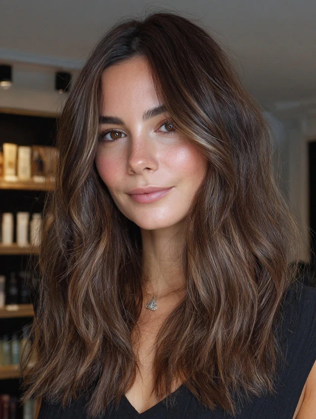 Face-framing balayage for brunettes is a simple yet powerful way to enhance your hairstyle. With soft, strategically placed highlights, this look adds brightness and dimension while keeping your natural color intact.