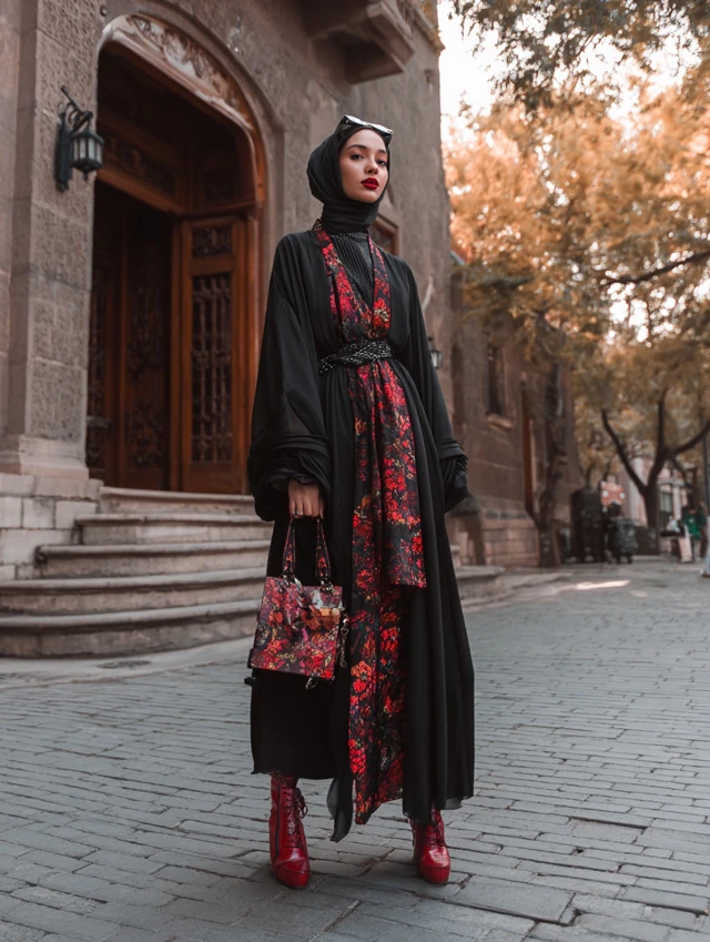 - Accessories: Minimalist jewelry, statement bags, belts to define the waist, and complementary hijab colors.