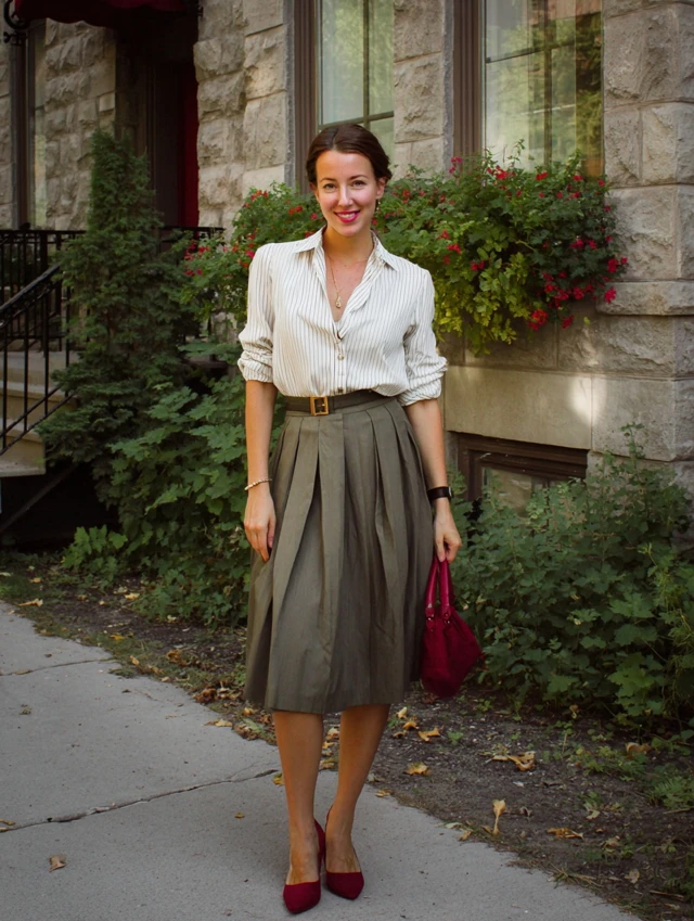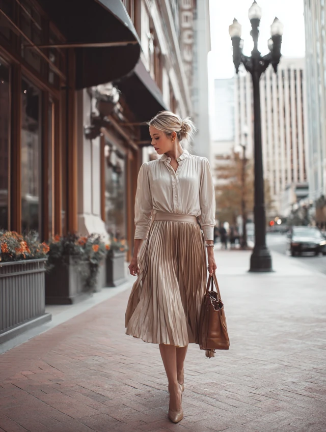 3. Pleated Skirt + Tucked-In Blouse