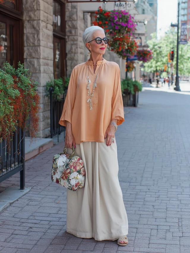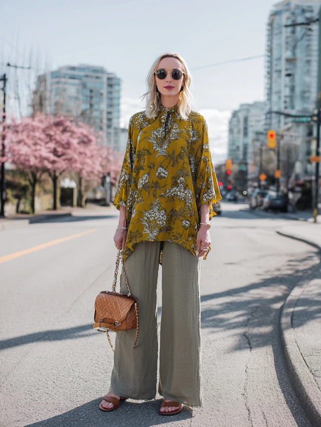 Why It Works: Flowy and feminine, this outfit creates an elegant silhouette.