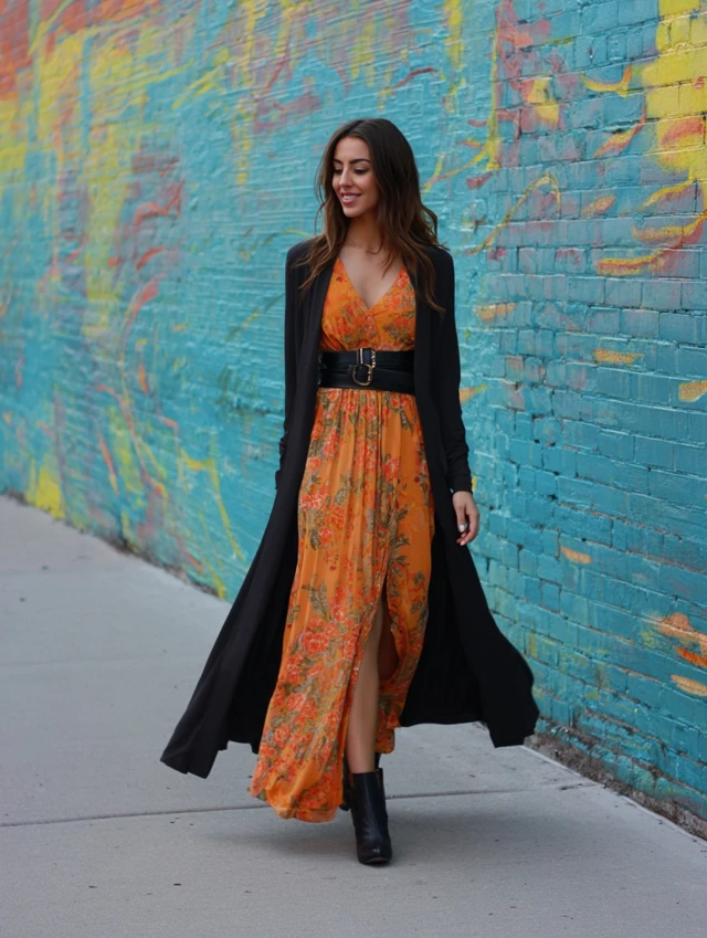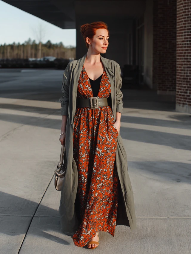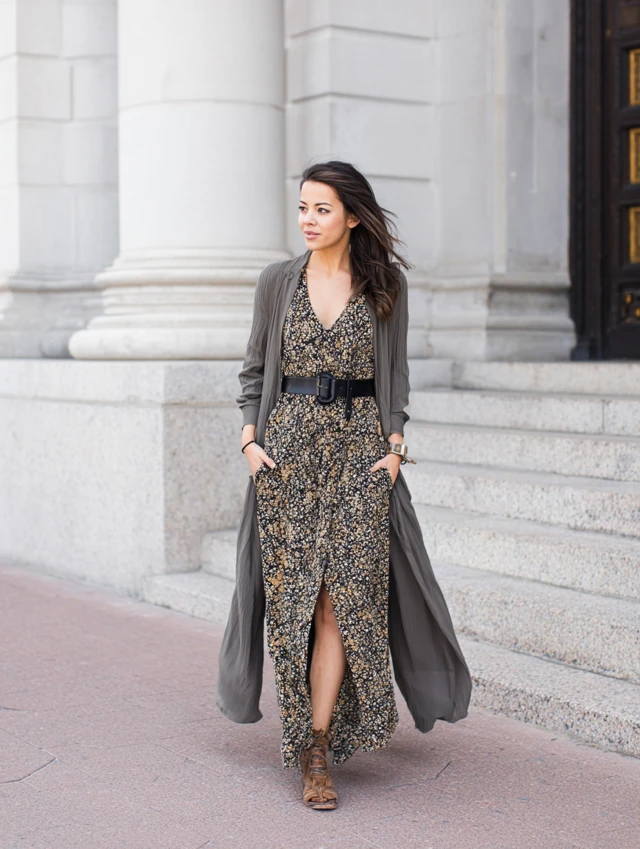 1. Maxi Dress + Belted Duster