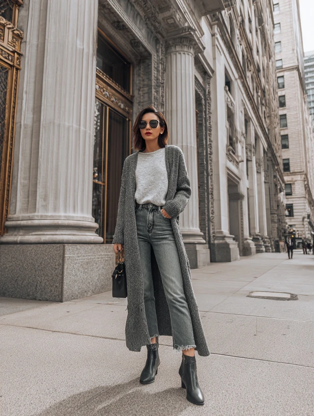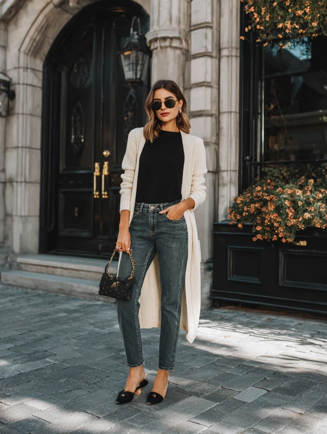 4. Straight-Leg Jeans + Longline Cardigan