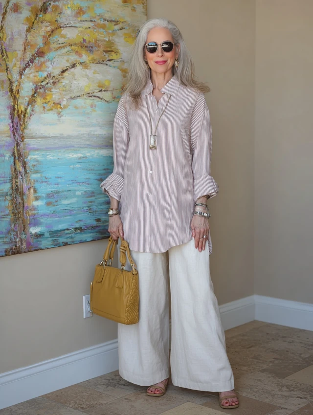 2. Wide-Leg Pants + Tunic Top