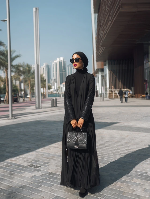 - Choose an abaya with subtle embroidery or texture.