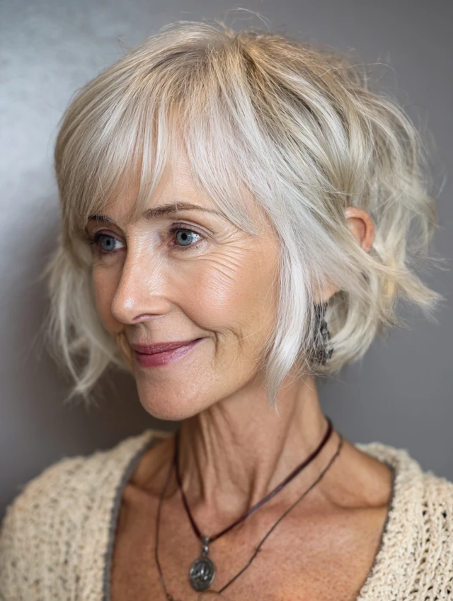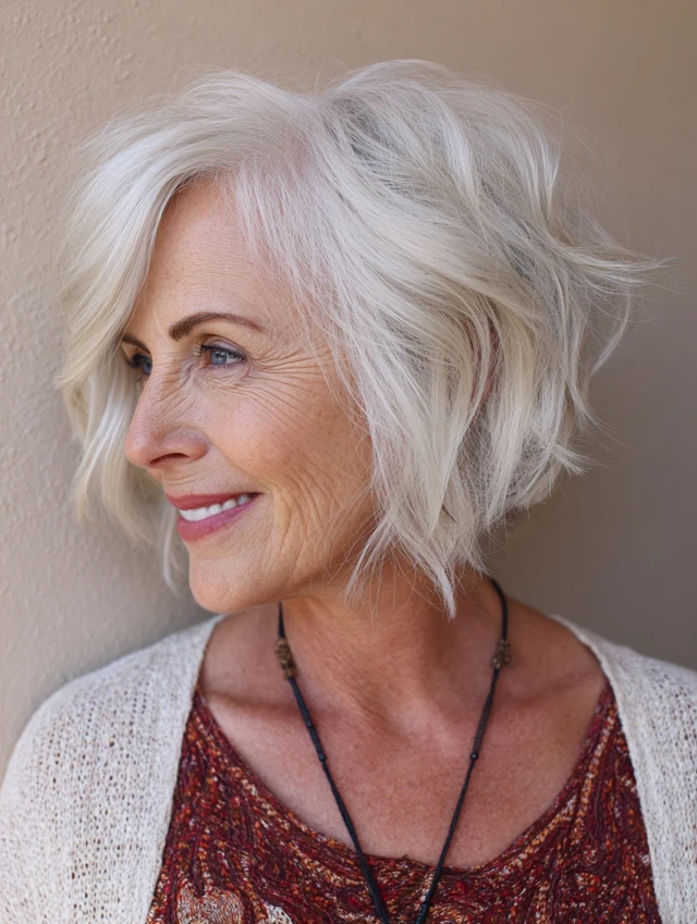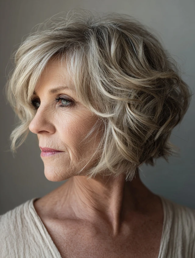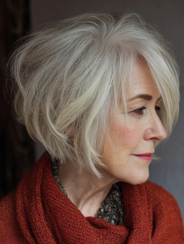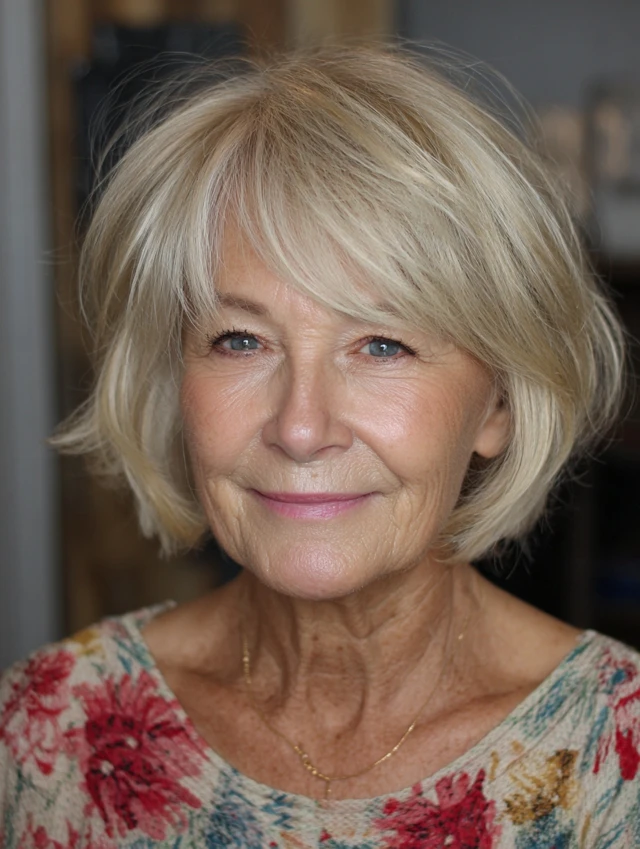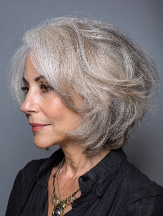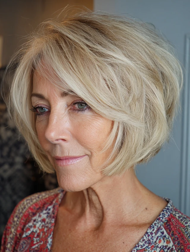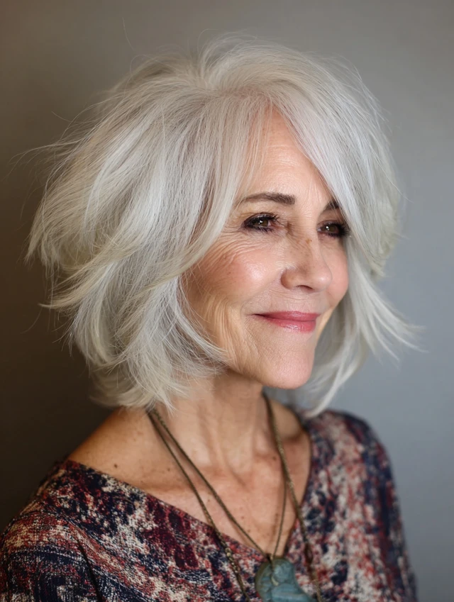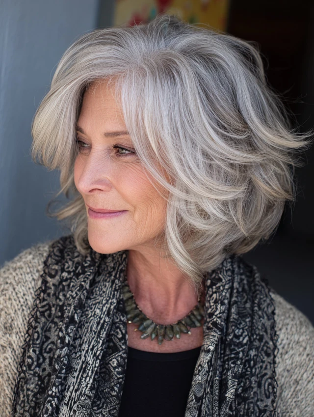 Layered bob hairstyles for women over 60 are a timeless choice that brings softness, volume, and easy elegance. The layers add movement and lift, making the hair look fuller while keeping styling simple and comfortable for everyday wear.