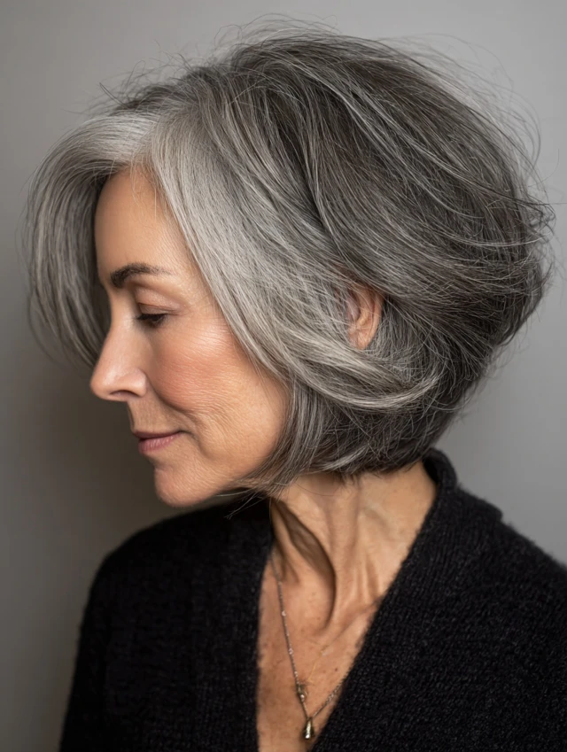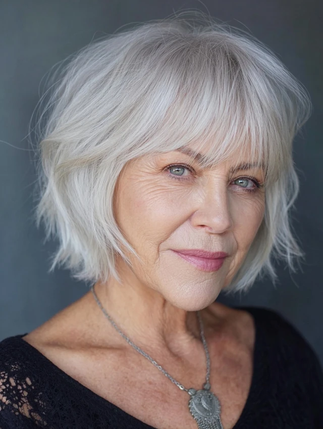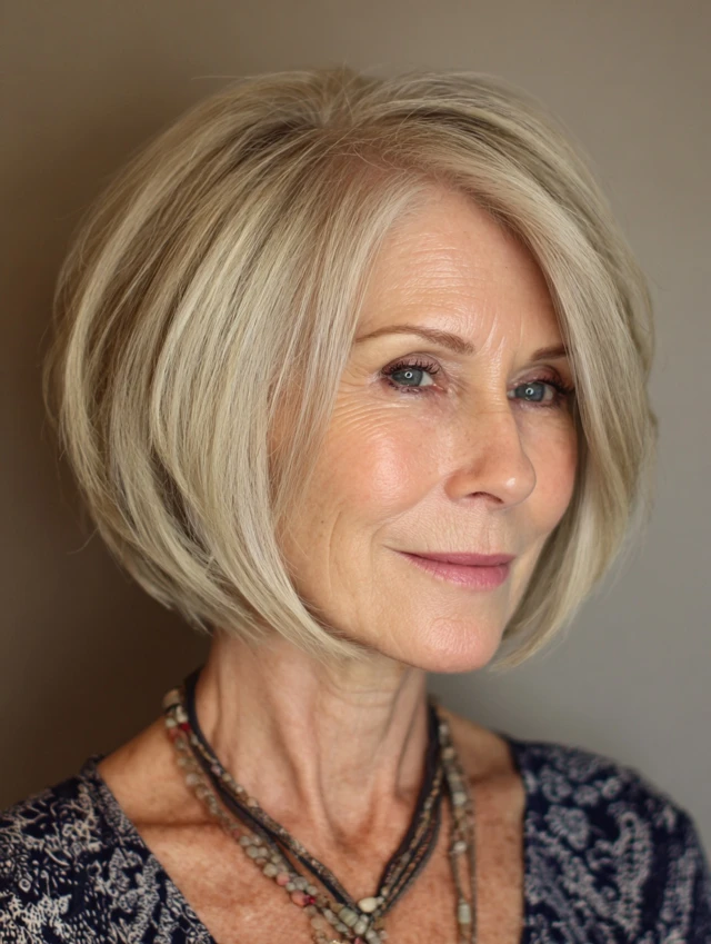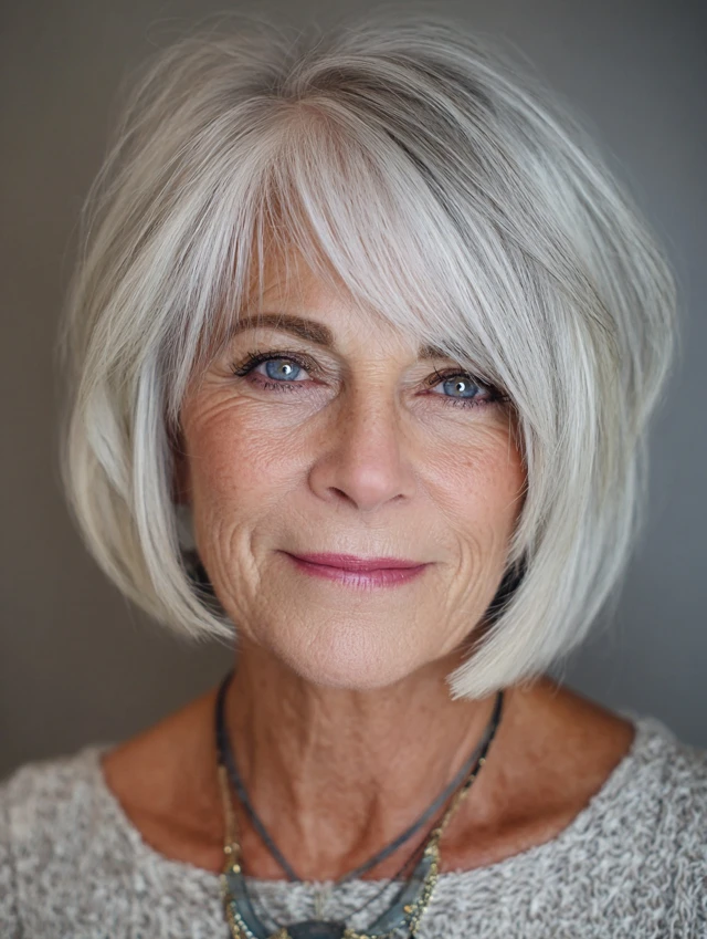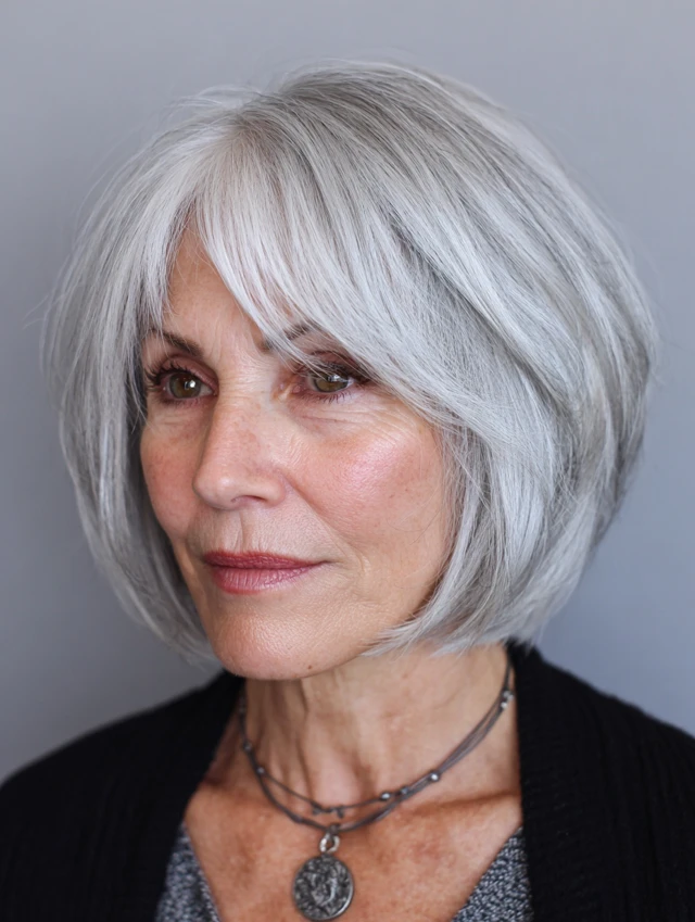 Whether you prefer a classic bob or a slightly longer lob, this style enhances your features beautifully at any age.