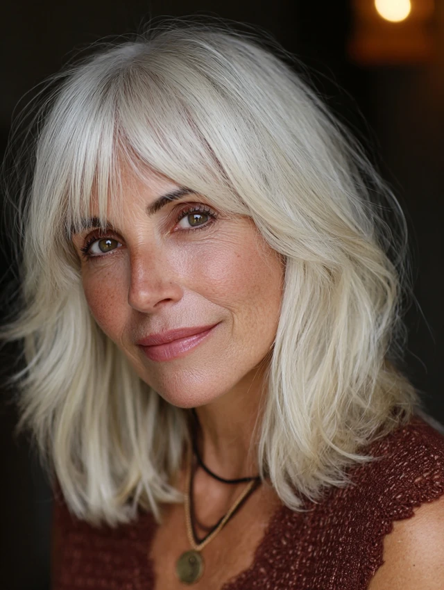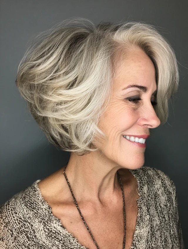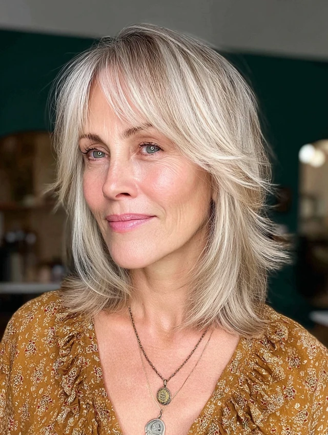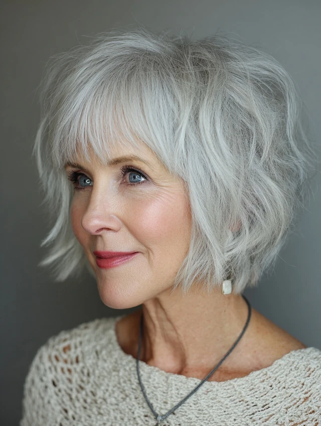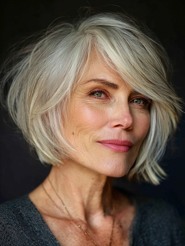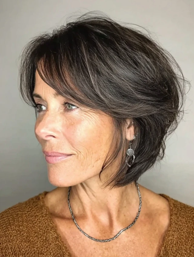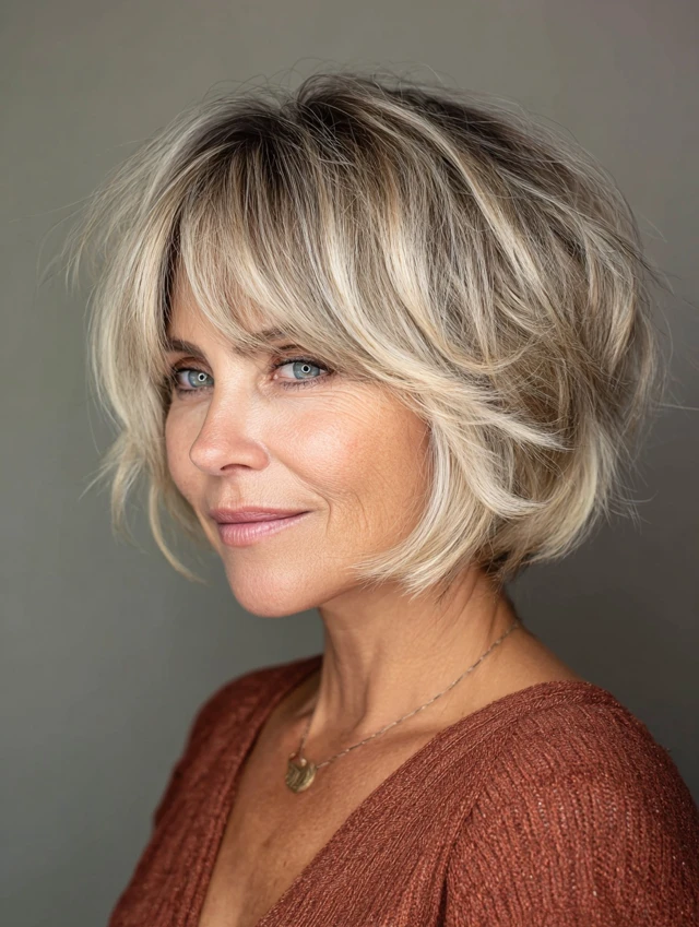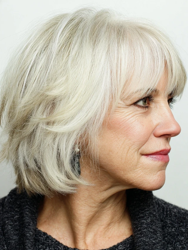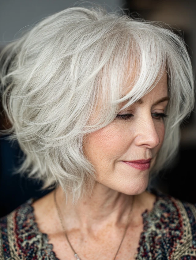 A layered bob with bangs over 50 is a timeless and flattering hairstyle that brings softness, movement, and elegance to your look. With the right layers and bangs, this haircut enhances your features while keeping styling simple and manageable.