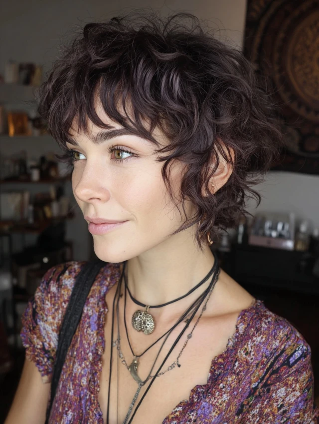 Curly-haired women looking for a chic, edgy, and lively haircut.