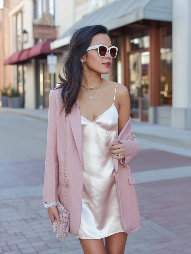3. Blush Pink Blazer + Satin Slip Dress