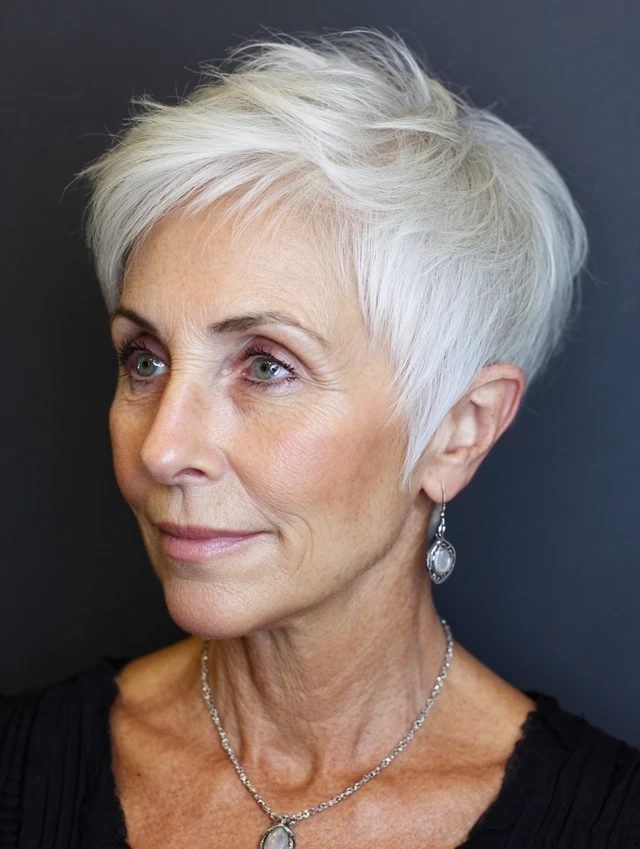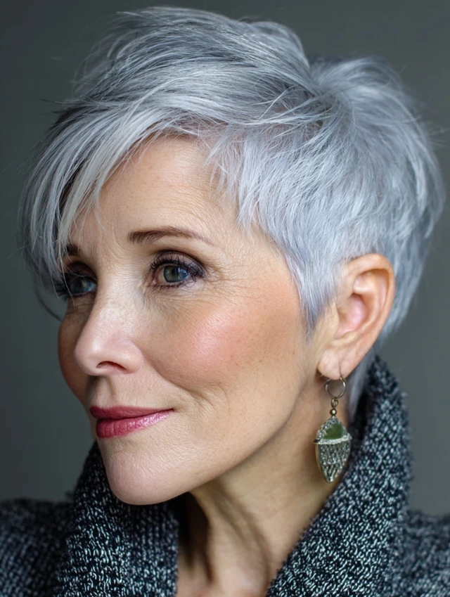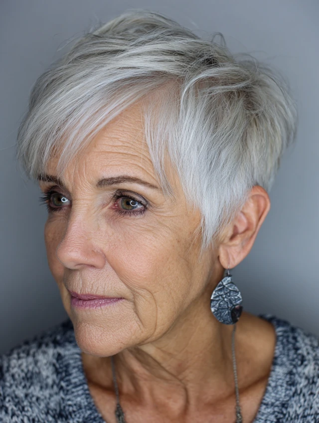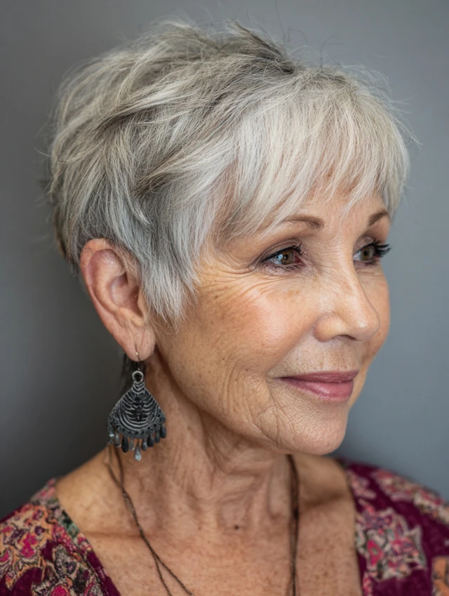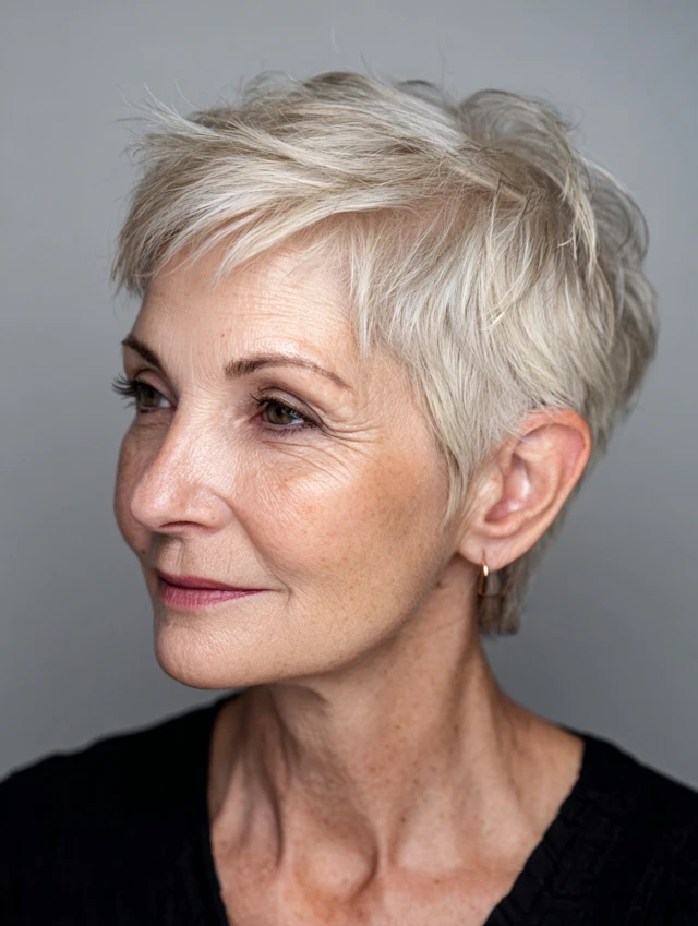 Pixie cuts are low-maintenance, versatile, and ideal for women over 60 who want to look elegant and stylish without spending too much time on daily styling.
