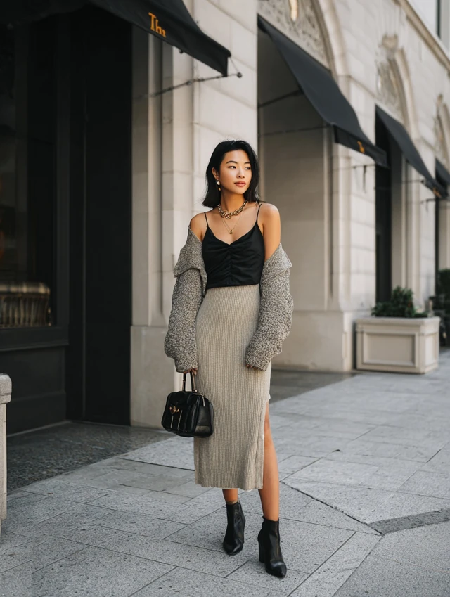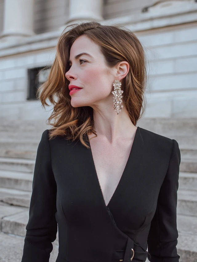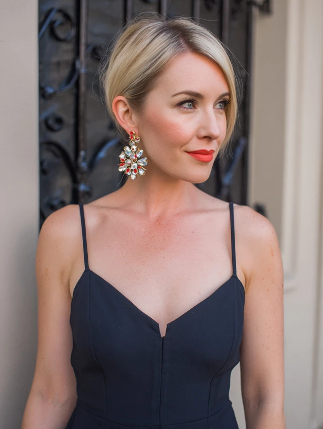 - Accessories: Clutch bags, delicate jewelry, layered necklaces, and statement earrings.