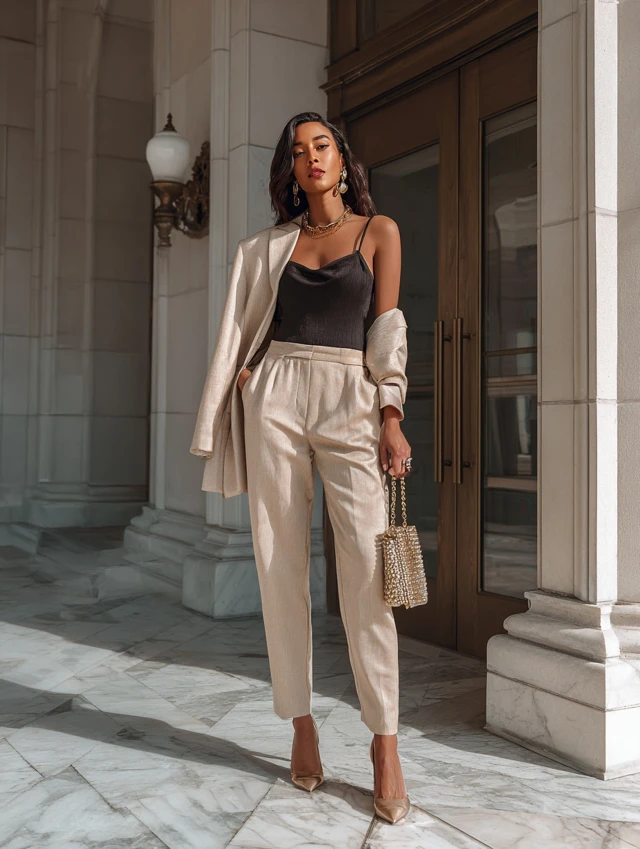 Semi-formal outfits shine in rich fabrics and thoughtful color choices. Satin, chiffon, crepe, and silk are all perfect options. Jewel tones, soft neutrals, or monochrome palettes keep things elegant, while metallic accents add evening glamour.
