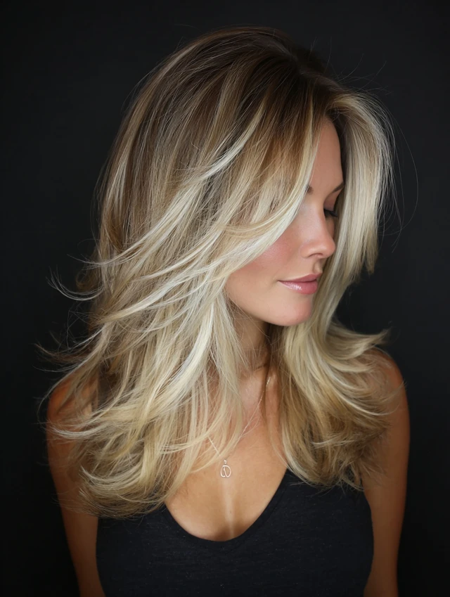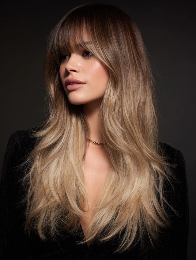 Layers enhance the balayage effect, adding volume and dimension for a fuller look.