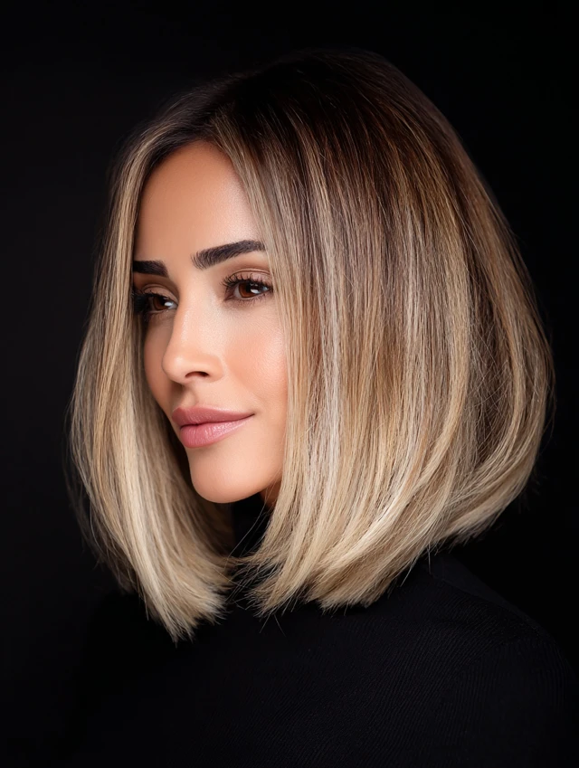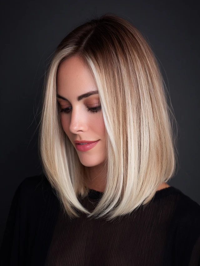 A longer bob with a smooth finish highlights the clean transition between colors for a polished look.
