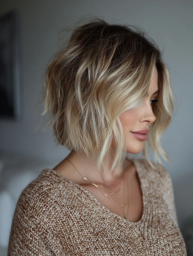 Short brown to blonde balayage hair is the perfect blend of depth and brightness. This style transitions seamlessly from a rich brown base into lighter blonde tones, creating a natural gradient that adds dimension, movement, and a sun-kissed glow — all on a short, manageable cut.