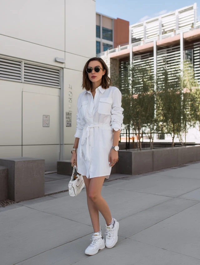 1. White Shirt Dress + Sneakers
