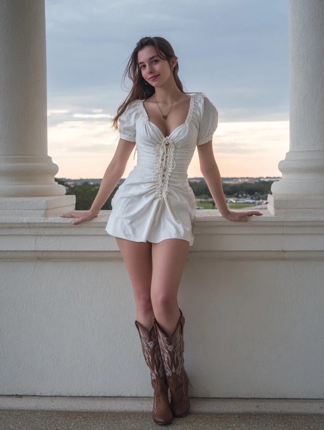 5. White Mini Dress + Cowboy Boots