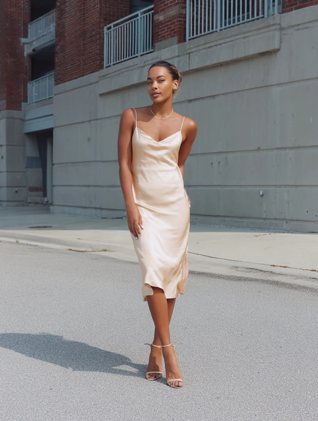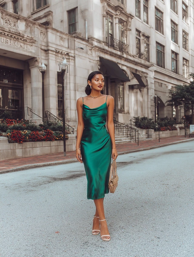 2. Satin Slip Dress + Strappy Heels