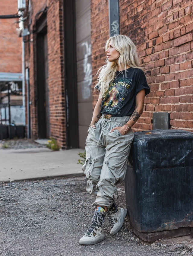 - Footwear: Sneakers for casual, heels for elevated chic, combat boots for edge.