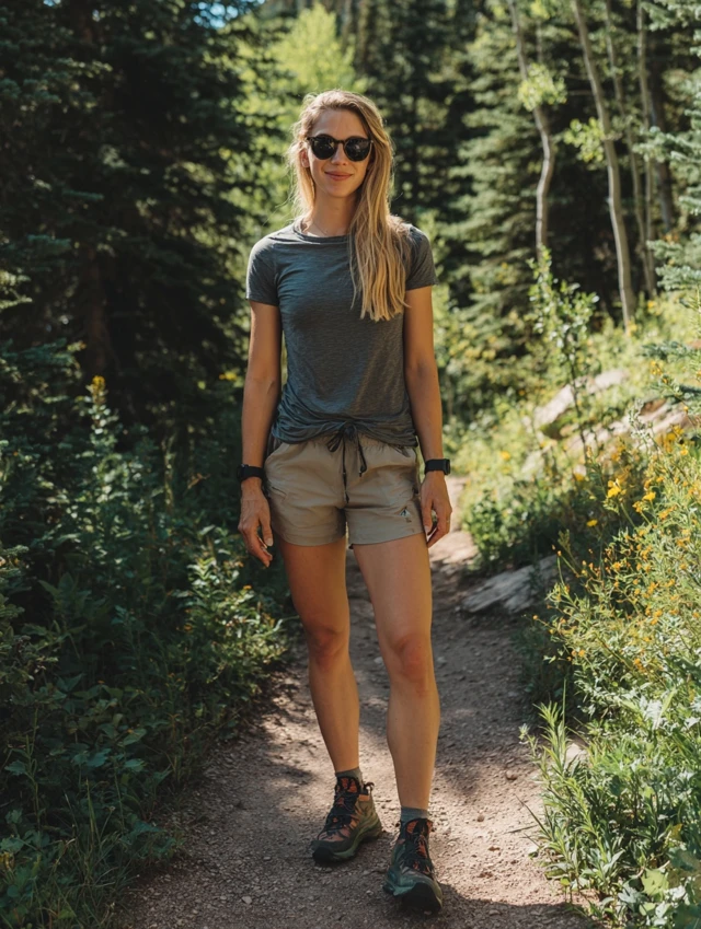 - Foundation: Moisture-wicking base layer tops, hiking leggings, or trail shorts.