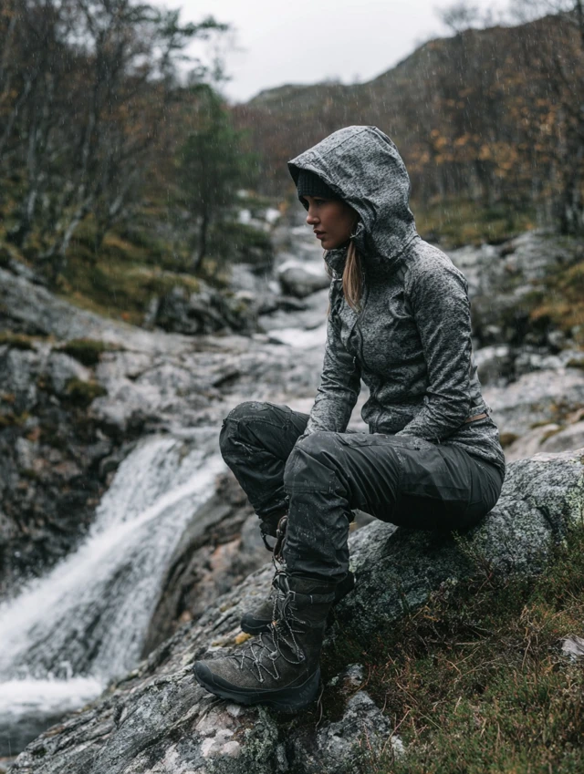 Choose neutral or earthy colors (green, black, brown, gray) that blend with nature — but don’t be afraid of pops of color for visibility. Technical fabrics like nylon, polyester, and merino wool keep you dry, warm, and comfortable.