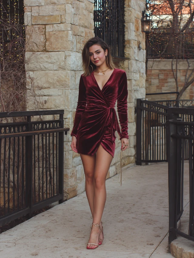 - Foundation: Velvet dresses, satin skirts, sequin tops, knit sweater dresses, or chic jumpsuits.